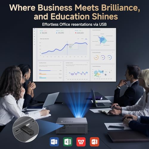 Versatile Entertainment & Productivity: Ideal for home cinema, gaming, outdoor movie nights, and office use. Supports presentations in PPT, Excel, and other formats. Includes a high-sensitivity remote for easy navigation.