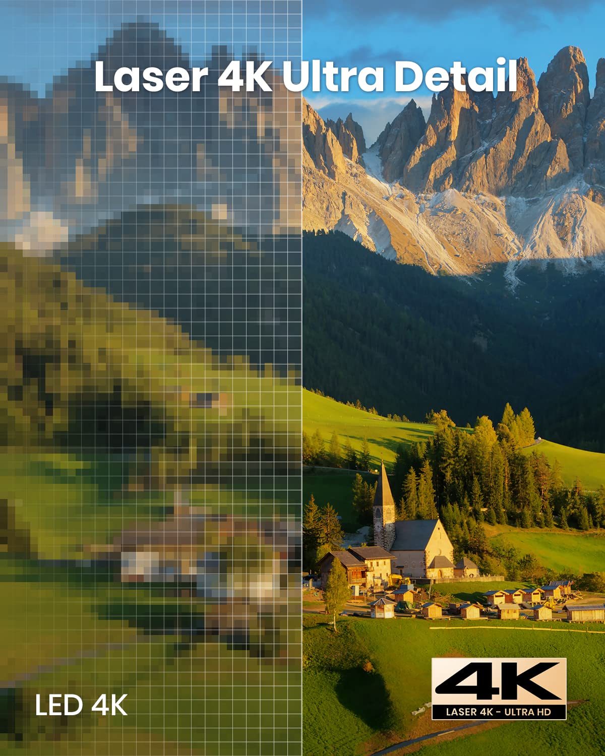Laser-Powered 4K UHD: Watch your favorite movies and shows in stunning 4K resolution. With 2200 ANSI lumens, enjoy bright, sharp images even in well-lit rooms.
