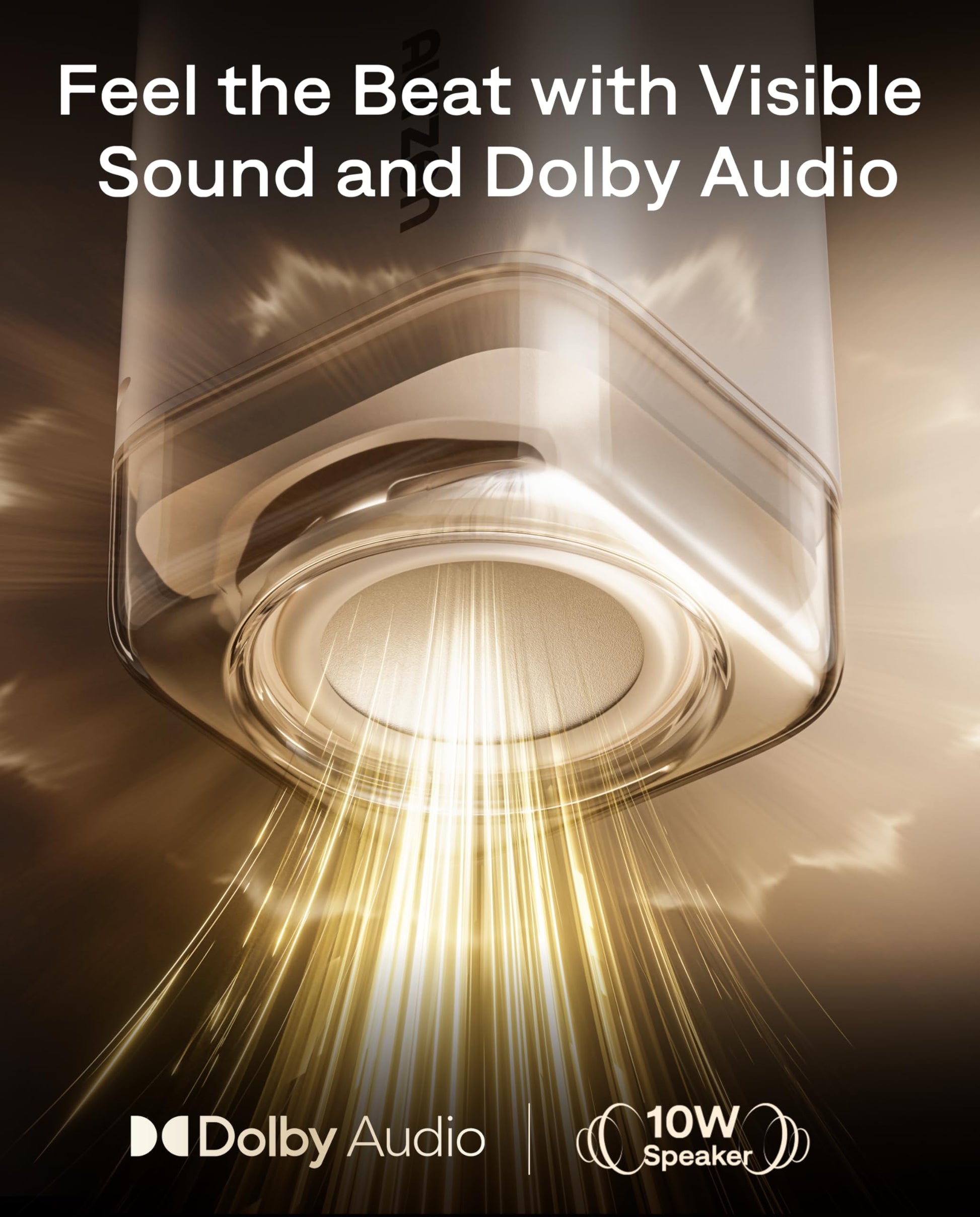 360° Dolby Audio: Built-in 10W speaker with rear-facing design delivers immersive, balanced sound. Connect external speakers or headphones via Bluetooth for enhanced audio.