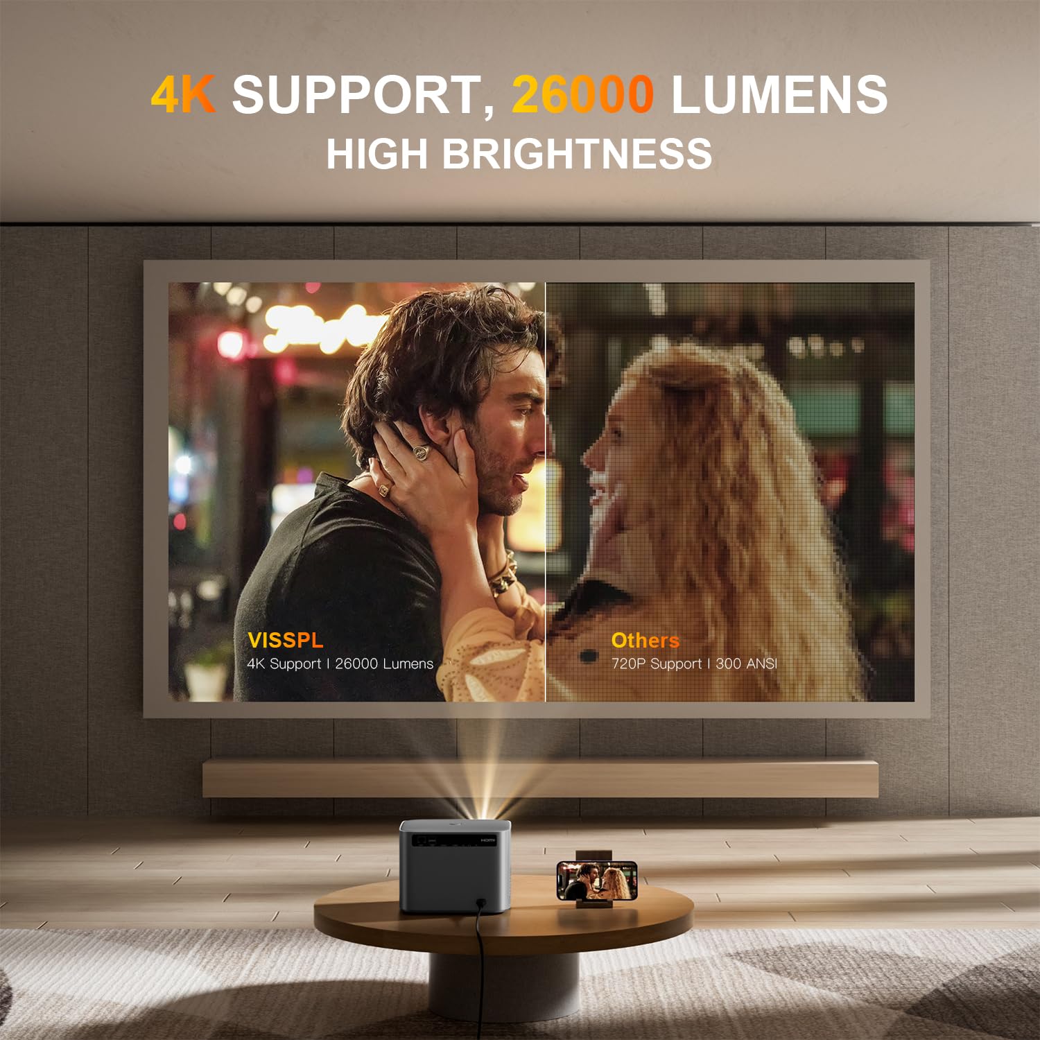 VISPPL 4K Projector | Dual 36W Hi-Fi Speakers, Indoor & Outdoor Cinema