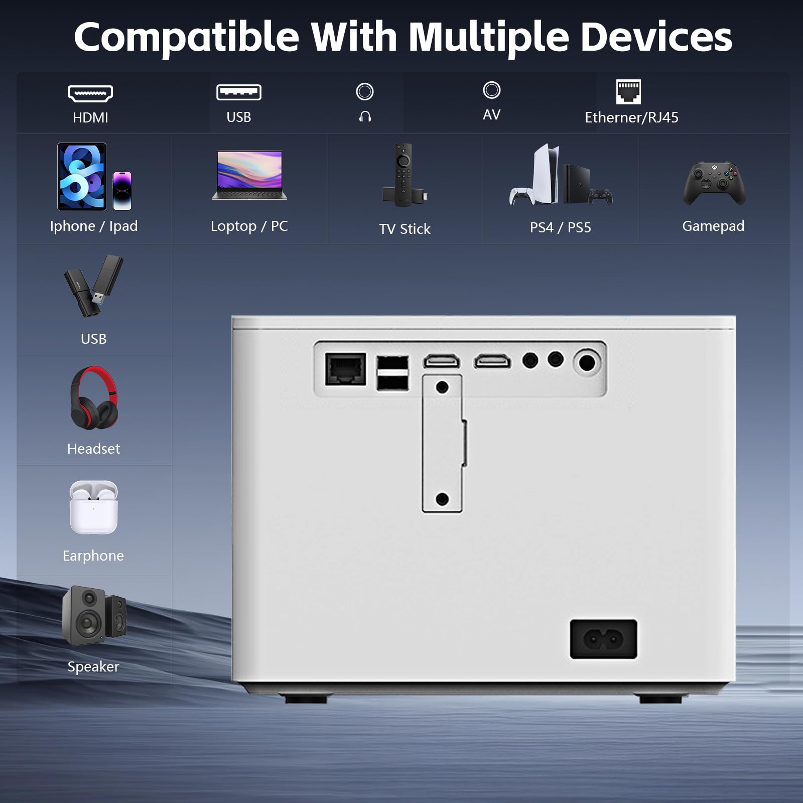 Features HDMI, USB, and 3.5mm audio ports to easily connect to laptops, smartphones, game consoles, TV sticks, tablets, and more. Perfect for home cinema, meetings, gaming, study sessions, and outdoor events.