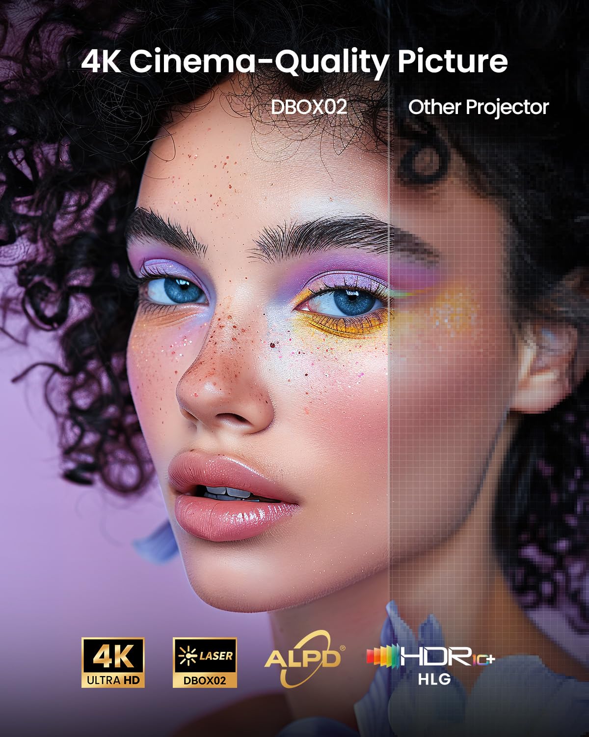 Vibrant 4K Picture: Native 4K resolution with 2450 ISO lumens delivers bright, sharp, and detailed images on screens up to 200 inches. Perfect for movies, shows, or gaming—even in moderately lit rooms.