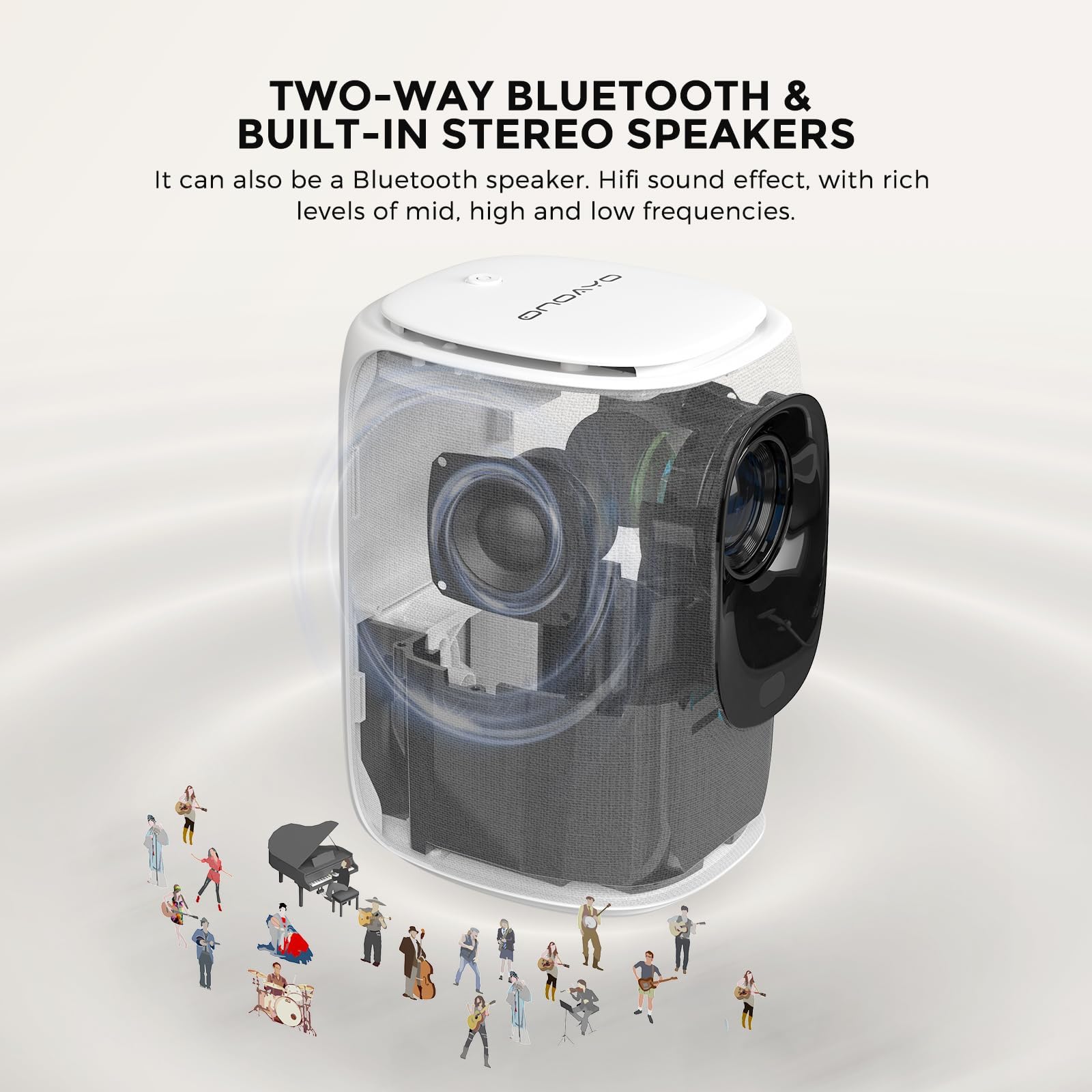 Dual 2.4G/5G WiFi ensures stable, lag-free streaming. Built-in Bluetooth lets you easily connect speakers, headphones, or soundbars — or use the projector itself as a Bluetooth speaker. -