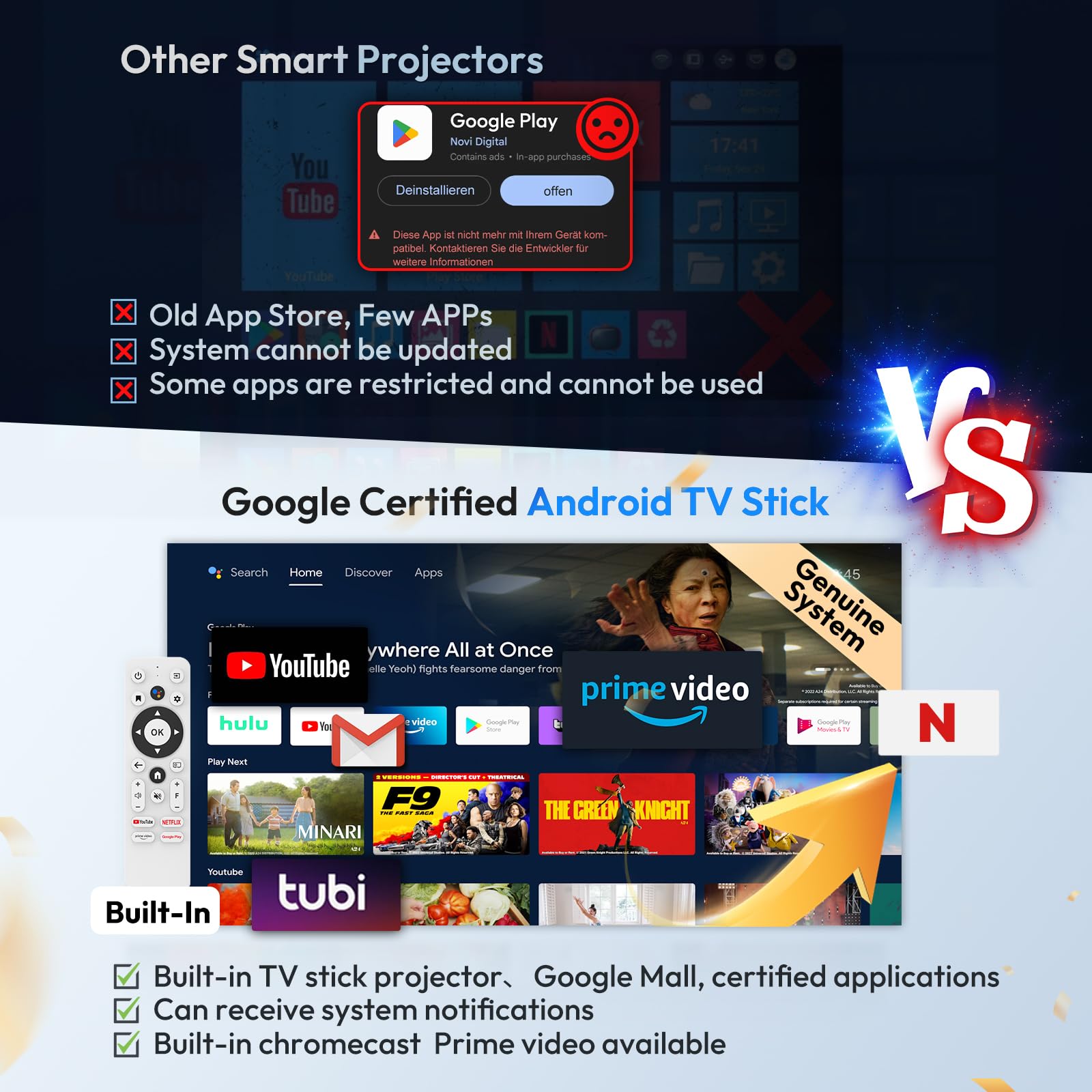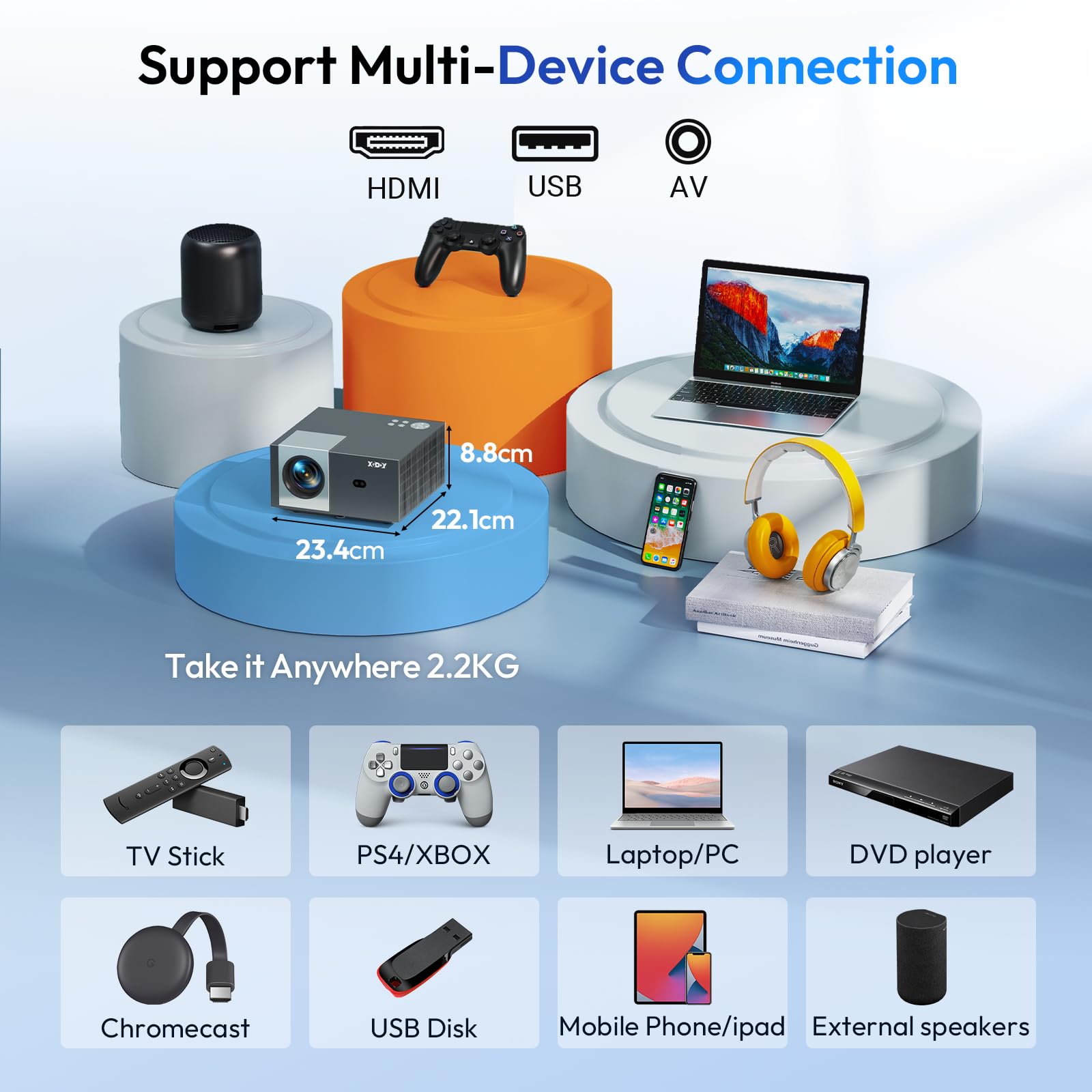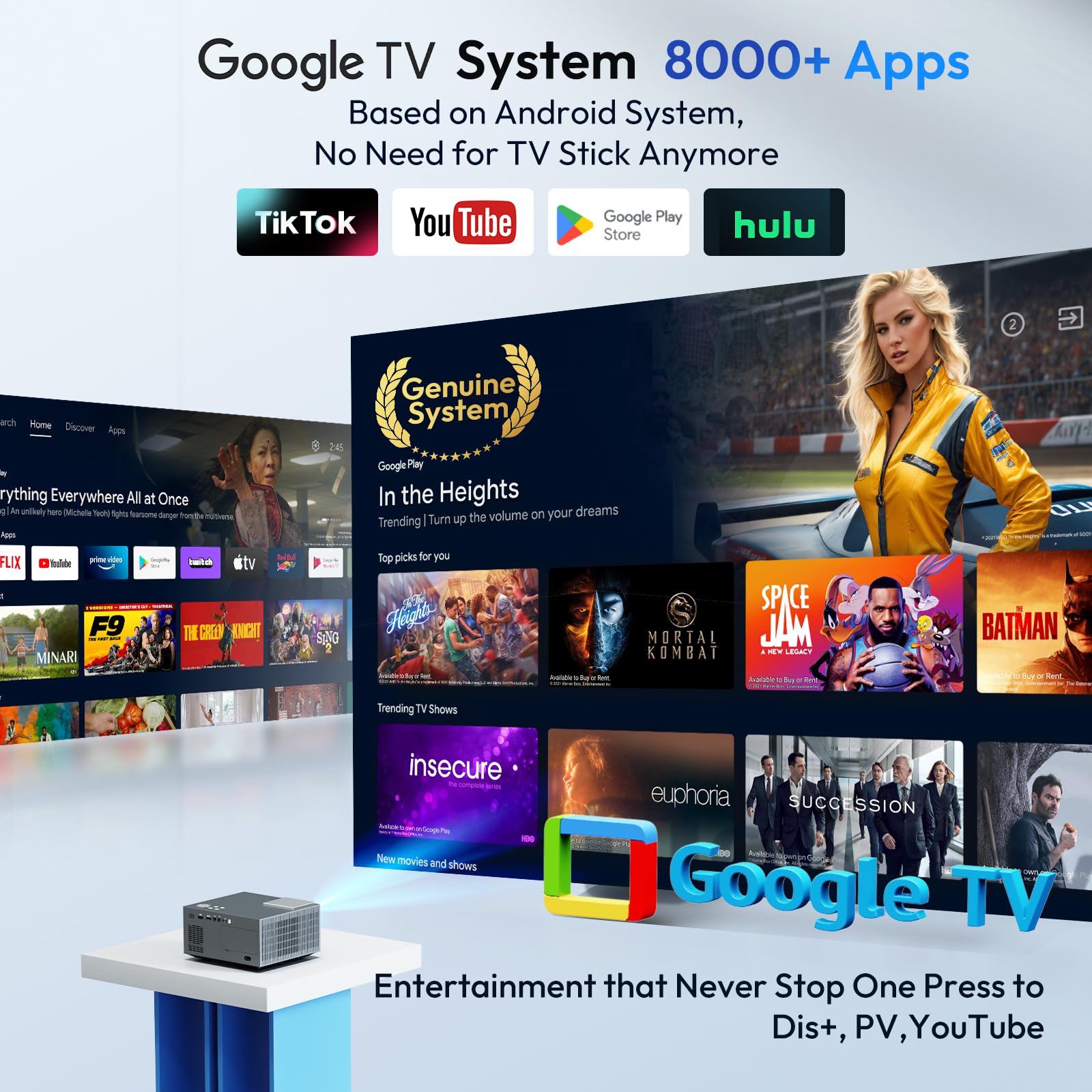 XGODY Sail2 4K Home Projector | 600 ANSI Lumens, Native 1080P, Google TV, Electric Focus, Auto Keystone, Dual WiFi & Bluetooth 5.2