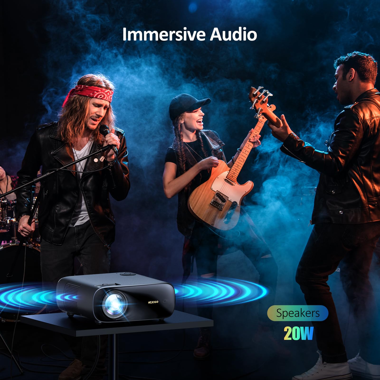 NexiGo PJ40 Gen 3 Projector | Native 1080P, 4K Supported, WiFi & Bluetooth, 20W Speakers, D65 Calibrated, Home & Outdoor Cinema