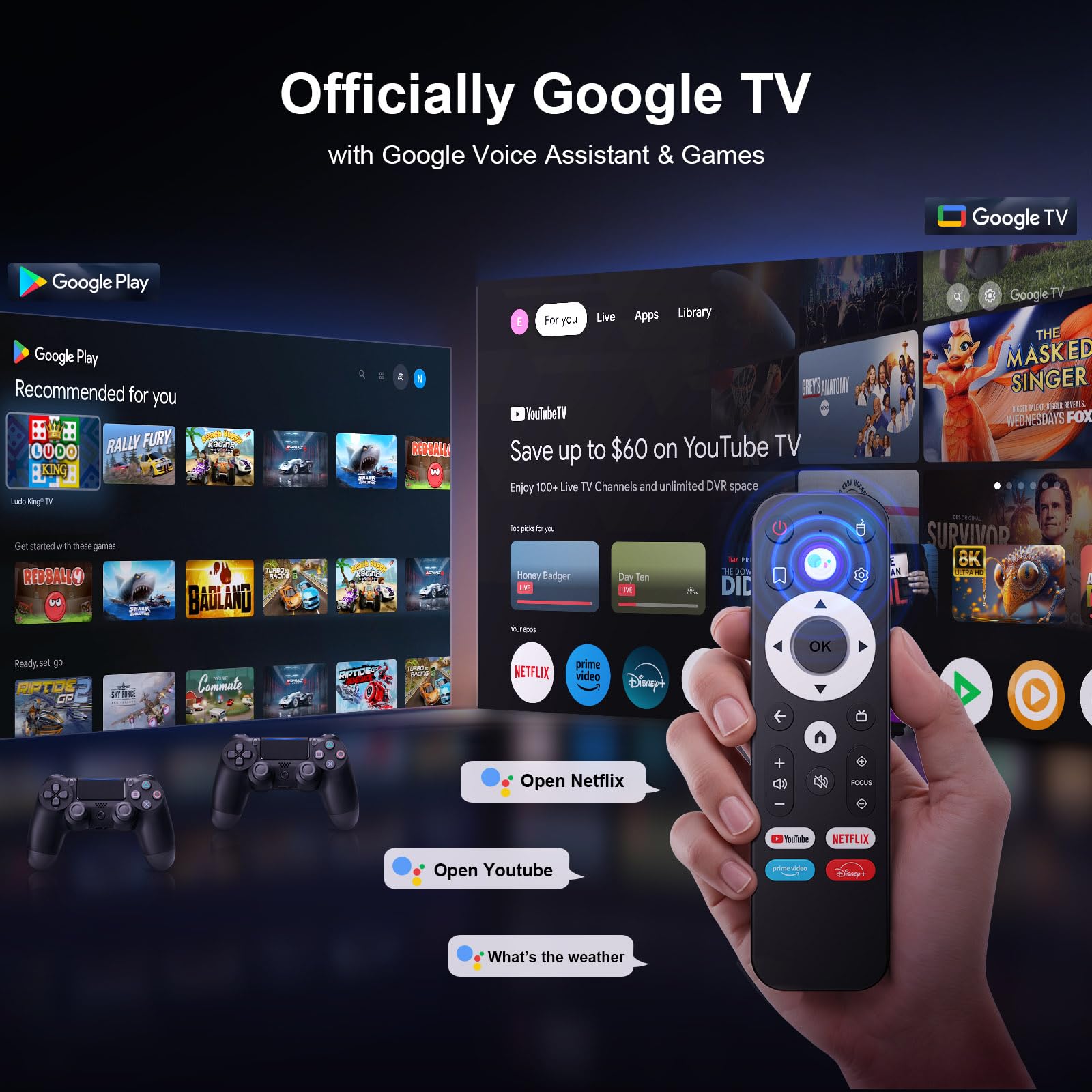 Official Google TV & Voice Control: Stream Netflix, YouTube, and Prime Video effortlessly. Use voice commands for hands-free operation—play content, adjust volume, or search your favorite shows.