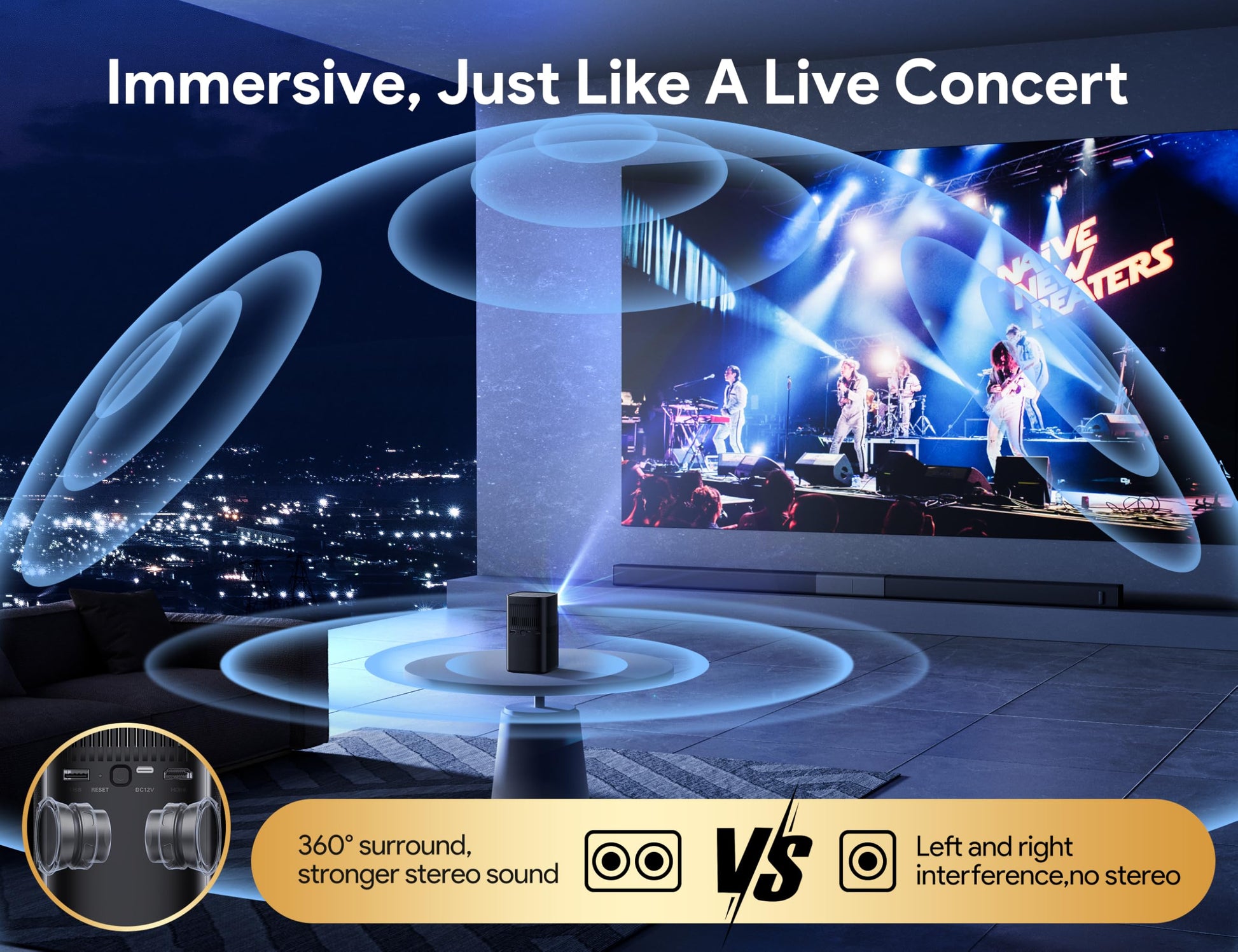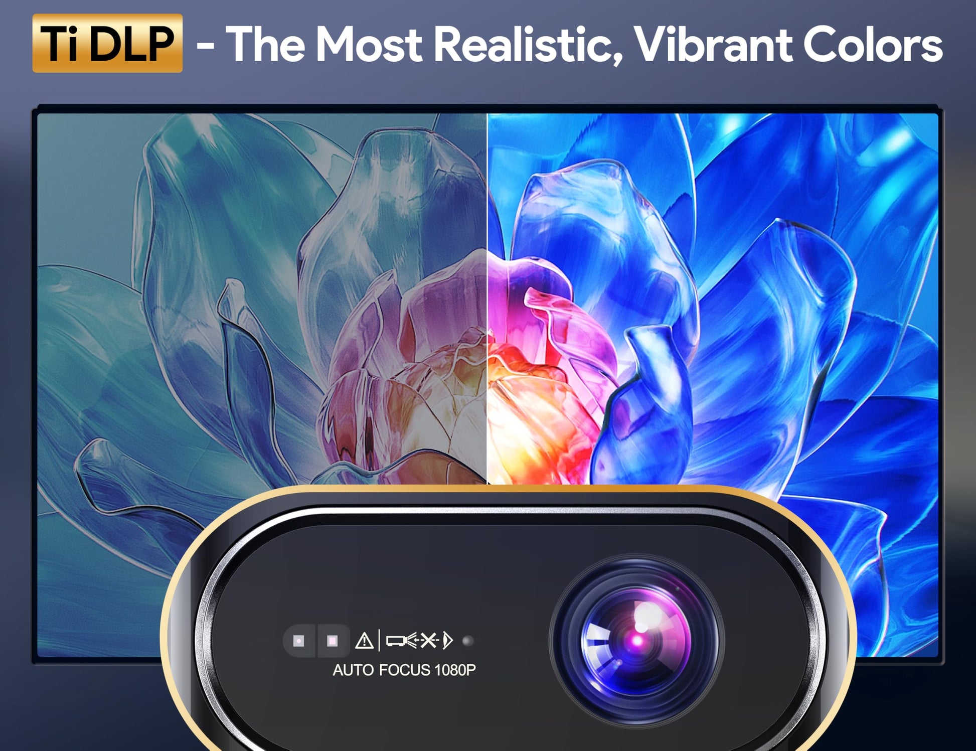 Enjoy crisp, vibrant visuals with native 1080P resolution and 4K decoding. With 400 ANSI lumens brightness and 2+32GB storage, every frame is detailed and colorful—even in brighter rooms.